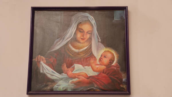 وفي الكنسية كما تقول العديد من المحتويات منها كتب الإنجيل وعدة صور تجسد ولادة السيد المسيح وعشاءه الأخير مع تلاميذه الاثني عشر قبل صعوده إلى السماء، وكذلك صور تجسد كيف تم صلبه وتعذيبه، وأحواض يطلق عليه اسم "القنديل"، وتعلوها صورة للسيدة مريم العذراء، مضيفةً "هذا الحوض يقصده الزائرون في حال أرادوا طلب شيء أو الدعاء أو طلبوا حماية من السيدة العذراء، وذلك عبر إشعال الشموع أمامها، ويبدأ بالطلب إيماناً منه بأنها تدعم وتسانده روحياً، وكتاب الإنجيل له نسختين العهد القديم والجديد".