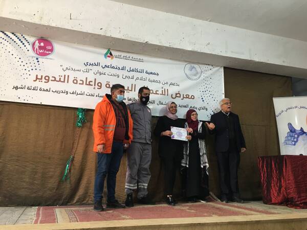 وفي هذا الإطار قالت مديرة "جمعية التكافل الاجتماعي الفلسطينية" جمال كليب لوكالتنا "النسخة الثانية من مشروع (لك سيدتي) استهدف 25 امرأة من نساء مخيم عين الحلوة، وكانت النسخة الأولى في شهر كانون الأول/ديسمبر 2021 الذي استهدف النساء المهمشات والراغبات في تحسين أوضاعهن المعيشية، وشمل منتجات إعادة التدوير من مواد البلاستيك والزجاج والملابس، بهدف إعادة استعمالها، ولصناعة وتزيين الفخار بحبال الخيش".