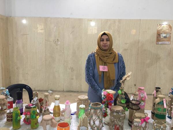 وأوضحت أن "المعرض الحالي شمل منتجات من المعرض السابق بالإضافة إلى منتجات من التراث الفلسطيني، فكل معرض يشمل ما سبقه مع تطوير أفكار ومهارات جديدة للنساء، وقد لا تكون هؤلاء النساء متعلمات، ولا تعرف بعضهن القراءة والكتابة، لذا استهدف هذا المشروع النساء في المنازل، وهن الأكثر حاجة للمساعدة في ظل الأزمة الاقتصادية التي تعيشها لبنان والتي انعكست على أوضاع اللاجئين وخصوصاً المرأة الفلسطينية بصورة سيئة للغاية، خصوصاً لعدم قدرتهن على العمل في سوق العمل اللبناني، فقمنا بتعليمهن مهارات تساهم في أهداف عدة منها، تمكينهن مادياً، لمساعدتهن ومساعدة أسرهن على مواجهة الأزمة، وتغيير الصورة النمطية عن المرأة الفلسطينية بأن مكانها المنزل فقط، بل أنه يمكنها النجاح وبأي مكان، وأنه من خلال التدريب يمكنها أن تفتح مشروعاً خاصاً بها بدءاً من المنزل وأن تتوسع به خارج المنزل".