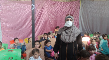 رغم النزوح والأوضاع المعيشية الصعبة تعمل المعلمة نجلاء معمار بإمكانات معدومة على تدريب النساء على مهن لتحقيق اكتفاءهن الذاتي، وتعليم الأطفال الذين حرمتهم الحرب من كافة حقوقهم.