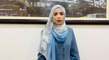 سارة النجار تحدت إعاقتها البصرية واجتازت العراقيل المجتمعية من خلال رفضها أن تكون مكتوفة الأيدي بلا عمل تنتظر تعاطف الآخرين، لتبصر أحلامها وأهدافها النور وصولاً للعالمية.