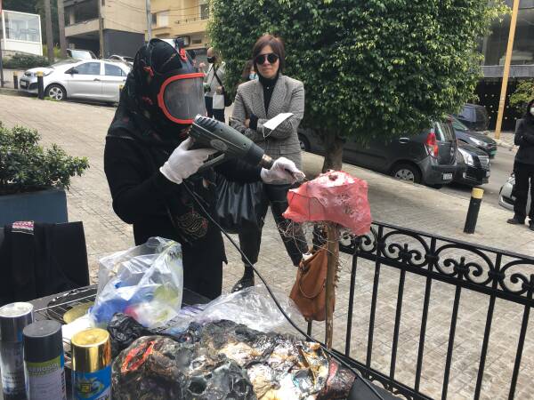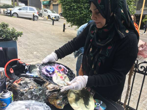 وبدورها قالت الفنانة التشكيلية ريتا الجميل "أستخدم الأكريليك ومواد زجاجية ومعادن وغيرها من المواد في بعض لوحاتي، ومما وجدته من بقايا منزلي الذي أصيب في انفجار مرفأ بيروت، وهو أمر يعكس الواقع، ويشبه المبدأ المستخدم في هذا المعرض إلى حد ما".