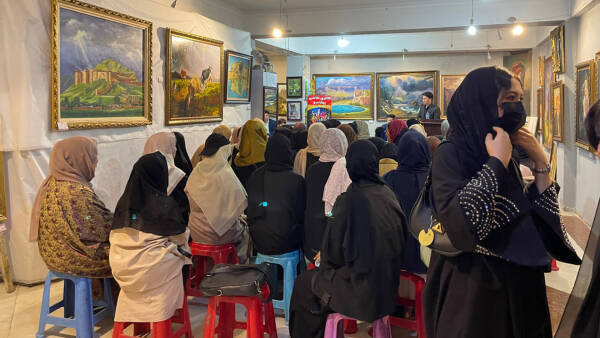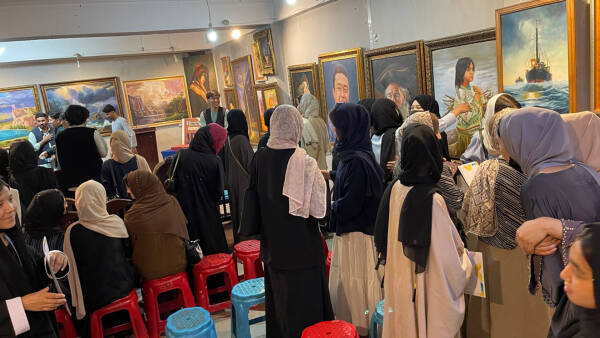 في المقابل، كانت الفتيات المشاركات طالبات في دورات الرسم، وهن ناجيات من مدارس حُرمت من مواصلة تعليمهن من الصف السادس بعد سيطرة طالبان.