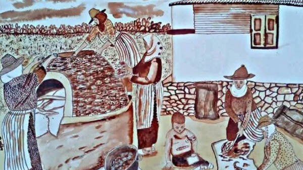 مرت ثلاثة عشر عاماً قبل أن تأتي اللحظة الفارقة في عام 2018 عندما اكتشفت زهرة صدفة أن الماء المتخلف عن عملية عصر الزيتون، المعروف محلياً بـ"المرجان"، يترك أثراً داكنا أشبه بالحبر، عندها خطرت لها فكرة: ماذا لو استعمل هذا الماء للرسم؟ حملت بعضه وجربته على الورق، لتكتشف أن الطبيعة قدمت لها صباغة مجانية وعضوية، غير مكلفة، ومختلفة عما يعرفه التشكيليون عادة، منذ ذلك الحين صار ''ماء الزيتون'' مادتها السرية؛ تغمس فيه ريشتها، ثم تمررها على الورق لترسم وجوه وملامح منسية من حياة النساء القرويات.