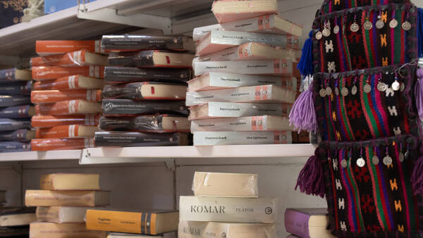 وبحسب فيدان محمد تحتوي المكتب كتب بلغات عدة كالعربية والكردية والأجنبية "تتجاوز الكتب الكردية الـ7000 كتاب، والكتب العربية أيضاً تتجاوز الـ 7000 كتاب، بينما الكتب الأجنبية ما يقارب 70 كتاب، تنقسم إلى ثلاثين قسم من حيث أنواع الكتب، فيما تحتوي رفوف المقهى 8000 نسخة من الكتب".