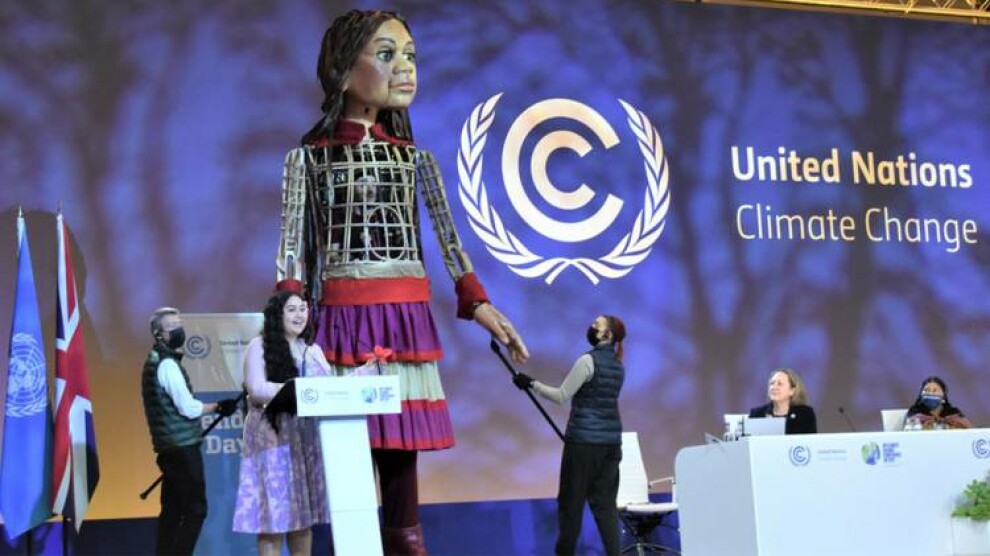 وتزامناً مع يوم المرأة في مؤتمر الأطراف "كوب 26" وصلت الدمية العملاقة "أمل الصغيرة" التي تمثل طفلة سورية لاجئة في التاسعة من عمرها إلى المؤتمر وصعدت على مسرحه، بعد أن سارت مسافة 8000 ميل عبر أوروبا خلال 14 أسبوعاً انطلاقاً من مدينة غازي عنتاب التركية، لتنضم إلى الناشطة المناخية بريانا فروين.