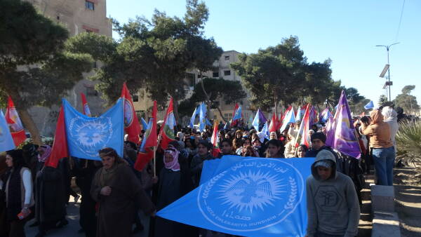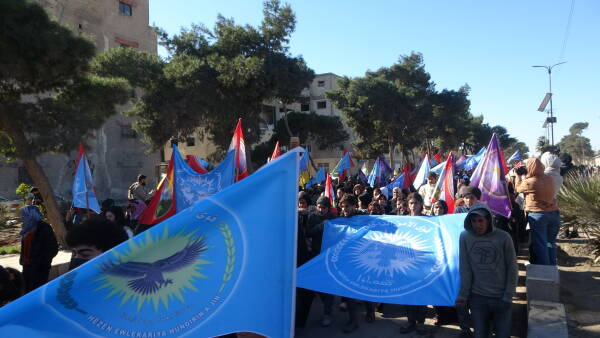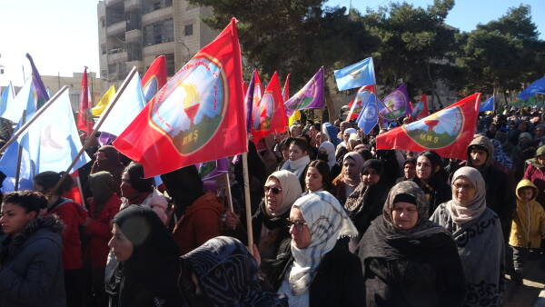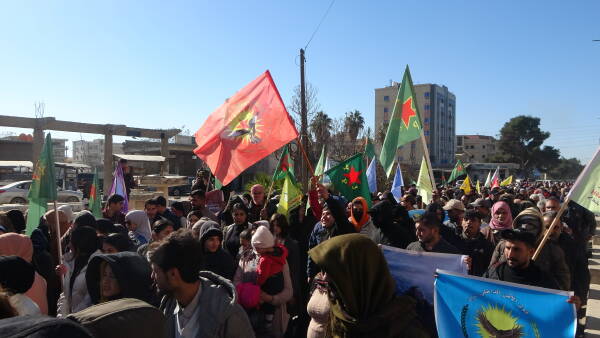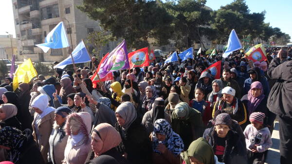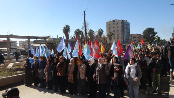 نظّم مجلس عوائل الشهداء، اليوم الخميس 15 كانون الثاني/يناير، مسيرة جماهيرية حاشدة في الرقة، تضامناً مع أهالي الشيخ مقصود والأشرفية، واستذكاراً لنضال المقاتلين الذين فقدوا حياتهم وهم يدافعون في خنادق القتال عن المدنيين من هجمات الجهاديين.