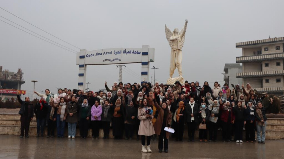 وأشار البيان إلى أن استهداف النساء كان حاضراً منذ بداية الهجمات، عبر ممارسات وحشية من تشويه الجثث إلى القتل العلني، ما يعيد إلى الأذهان مقاومة المقاتلات الكرديات مثل آرين ميركان ورفيقاتها في كوباني عام 2014، اللواتي دحرن داعش "مورس ضدهن أشكال متعددة من العنف الوحشي، من رمي الجثث في الأبنية، إلى تشويه أجسادهن، وصولاً إلى القتل العلني للمقاتلات والمدنيين".