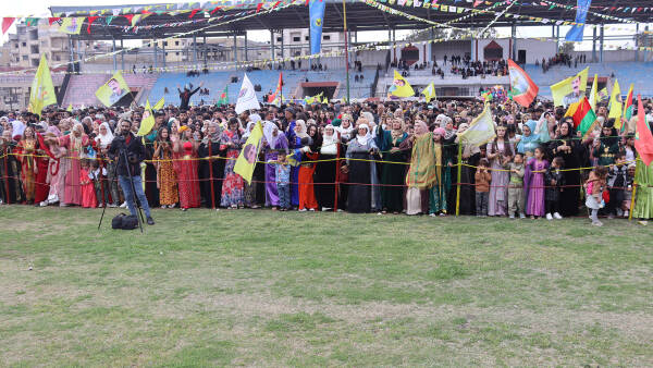 توافد الآلاف من أهالي إقليم شمال وشرق سوريا إلى مناطق المخصصة للاحتفال بعيد نوروز الذي تعود جذوره لآلاف السنين، وارتدت النساء المشاركات في الاحتفالية الزي الفلكلوري الشعبي الخاص بهنَّ والمُعبر عن تراثهنَّ ومدى ارتباطهنَّ بثقافتهنَّ، ومن خلال ملابسهنَّ شكلنَّ مع الطبيعة ألوان نوروز.