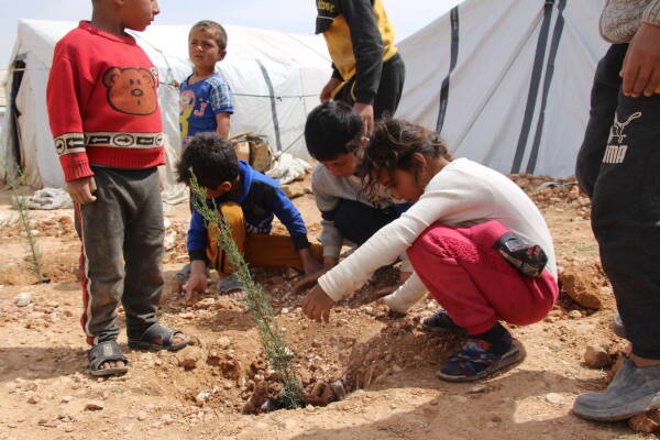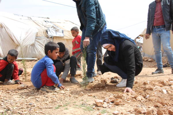 حملة التشجير مستمرة لإنشاء سور من الأشجار حول المخيمات