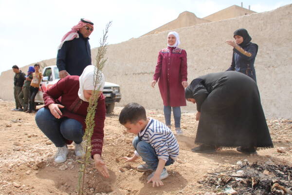 وانطلقت حملة مبادرة أهالي منبج للتشجير في أواخر شهر آذار/مارس، والتي بدأت بتشجير الوادي الكائن في وسط المدينة، واليوم تستأنف الحملة في مخيم منبج الشرقي الجديد والقديم.