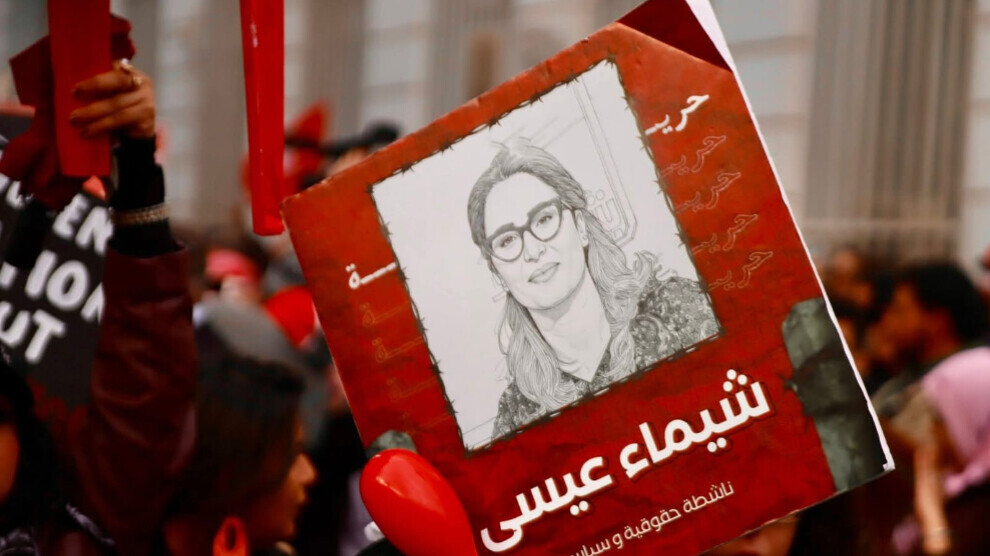 وكانت قد أوقفت شيماء عيسى البالغة من العمر 45 عاماً من قبل رجال شرطة بزي مدني خلال مشاركتها بمسيرة احتجاجية ضد القمع والاستبداد بالعاصمة تونس.