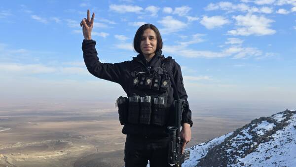 أفستا خابور التي شدت قامتها بالسلاح والزي العسكري، تتحدث بثبات وسط الثلوج "نحن هنا في تلة كوكب، العدو قريب، جماعاته تحاول التسلل من تحت الجبل. هم بقايا داعش، يطلقون على أنفسهم اسم هيئة تحرير الشام ليهاجموا أرضنا. لكننا نقولها بوضوح؛ لن يستطيعوا أبداً أن يطأوا أرضنا. هذه الأرض أرضنا، لا حق لهم فيها. ما دمنا أحياء سنقاتل، وما دمنا أبناء القائد عبد الله أوجلان فلن نعرف الاستسلام".