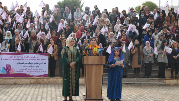 أعلنت منصة الفعاليات المشتركة للحركات والتنظيمات النسائية في إقليم شمال وشرق سوريا، عن انطلاق حملتها لمناهضة العنف ضد المرأة، والتي تستمر حتى الـ 30 من تشرين الثاني/نوفمبر الجاري.