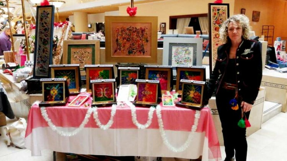 وتنوعت أعمالها بين لوحات وتحف زجاجية وتحف سيراميك، وتميزت جميعها بتنوع الألوان والإضاءة والفسيفساء، مما زاد من سحر اللوحات والتحف الزجاجية المعروضة.