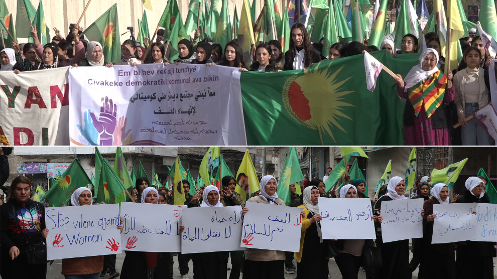 ضمن سلسلة فعاليات اليوم العالمي لمناهضة العنف ضد المرأة وتحت شعار "معاً لبناء مجتمع ديمقراطي كومينالي لإنهاء العنف" خرج أهالي مدينتي حلب وقامشلو في مسيرات حاشدة رفضاً للعنف الممارس بحق النساء وتأكيداً على مواصلة النضال حتى القضاء عليه.