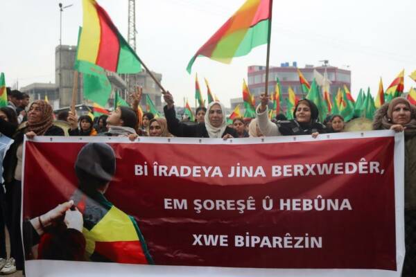 ورفعت المشاركات شعار "JIN JIYAN AZADÎ" مؤكدات أن المقاومة والنضال هما السبيلان لإفشال جميع المؤامرات التي تستهدف هوية النساء ووجود الشعب الكردي.