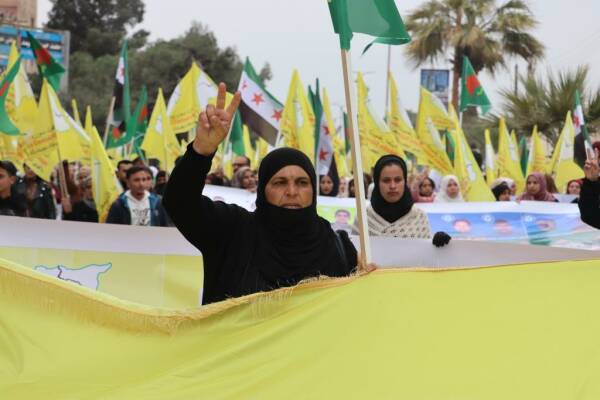 خرج اليوم الاثنين30 كانون الأول/ديسمبر، أهالي مقاطعة الرقة في إقليم شمال وشرق سوريا بمسيرة تضامناً مع قوات سوريا الديمقراطية ووحدات حماية المرأة، في ظل الاحداث المتسارعة على الساحة السورية واستغلال تركيا للفوضى السائدة في البلاد لشن هجماتها على إقليم شمال وشرق سوريا.
