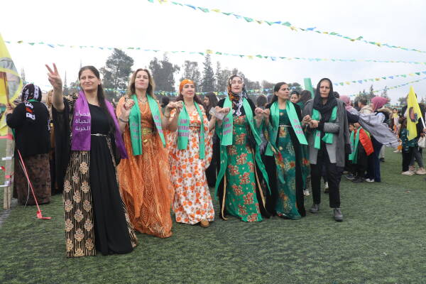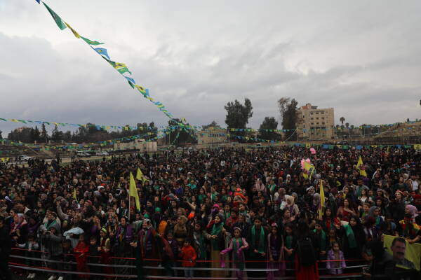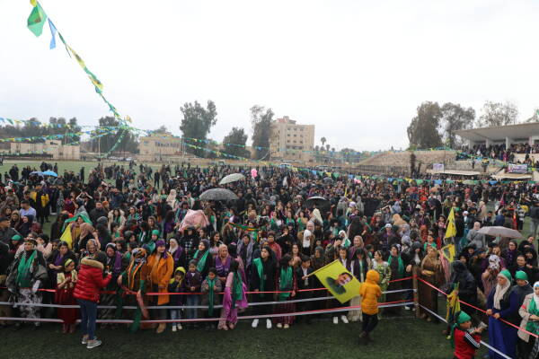 اتجهت نساء مدينة قامشلو ونواحيها إلى ساحة نوروز في مدينة قامشلو للاحتفال باليوم العالمي للمرأة، وأكدت المشاركات في احتفالاتهن التي أقيمت تحت شعار "بفلسفة المرأة الحياة الحرية نحو سوريا ديمقراطية"، أن نضالهن مستمر حتى تحرير القائد عبد الله أوجلان جسديا.