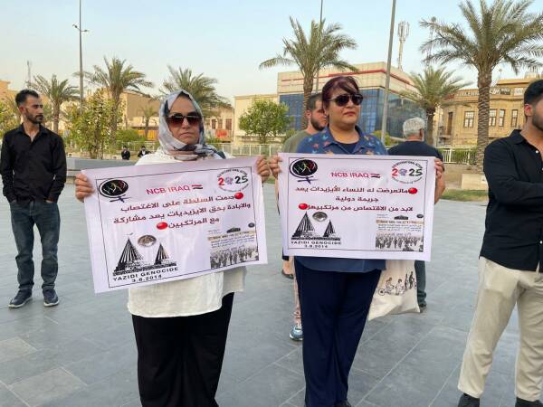طالبت ناشطات عراقيات من خلال وقفة تأبينية لضحايا مجزرة شنكال، الحكومة العراقية الاعتراف بالإبادة الجماعية بحق الإيزيديين وتشكيل لجنة للبحث عن المختطفين ومناصرة الناجين.