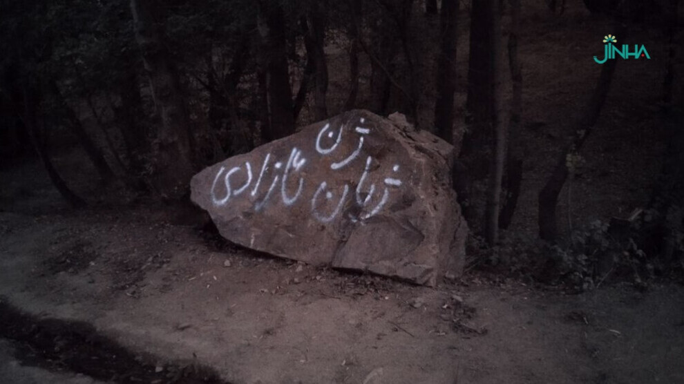 من خلال وضع لافتات على الصخور وعلى الطرقات ليشهدها الجميع، بالإضافة إلى كتابة شعار "Jin jiyan azadî" على الصخور، أعلن متسلقي الجبال من مدينة سنه، تنظيم احتجاجات حاشدة.