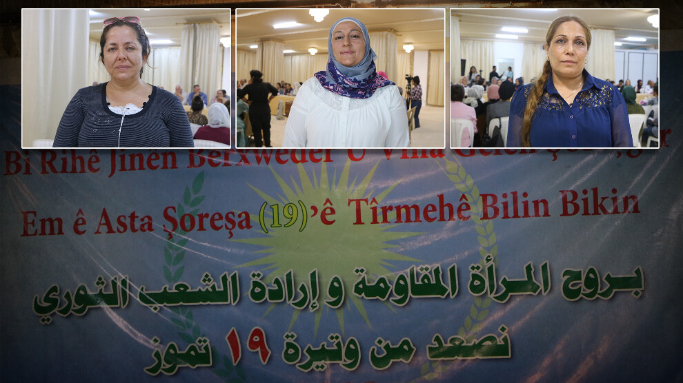 ومن جانبها تحدثت رئيسة هيئة المرأة عفرين ـ الشهباء أمينة ملا حسن عن أهمية هذه الندوة "شعار الندوة يعطي مضمون وأهمية الندوة، والانتصارات التي حققتها المرأة ضمن ثورة 19 تموز، علينا حماية مكتسباتها ورفع وتيرة النضال للوقف في وجه القوى الشوفينية التي تستهدف هذه الثورة".