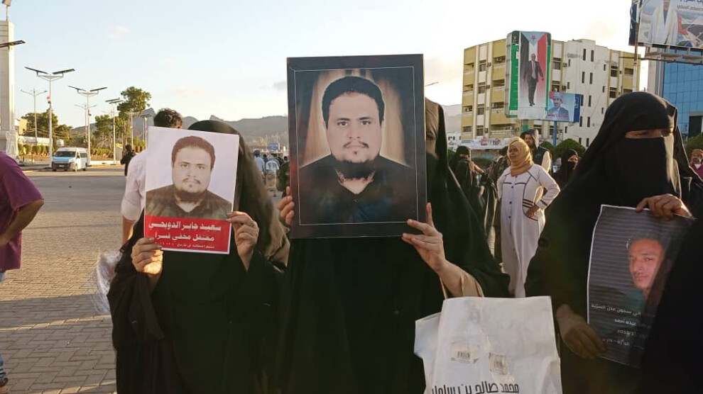 وقالت أم المعتقل عماد محمد العبادي نجيبة أحمد محمد "ابني معتقل منذ 11 عاماً، اختفى في عام 2016 بعد اختطافه من قبل الحزام الأمني، واليوم تم إطلاق الرصاص علينا أثناء وجودنا في الساحة لمطالبة الجهات المختصة بمعرفة مصير أبنائنا المخفيين".