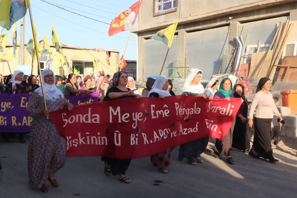 Makhmur (Maxmur)- A march was held in the Makhmur refugee camp to protest the aggravated isolation imposed on Kurdish leader Abdullah Öcalan with the participation of hundreds of people living in the camp. The march started in front of the Martyrs Families’ Institution and ended in front of the UN Makhmur office. After the march, Filiz Budak, Co-chair of the People's Assembly of the Makhmur refugee camp, made a speech on behalf of the people participating in the march.