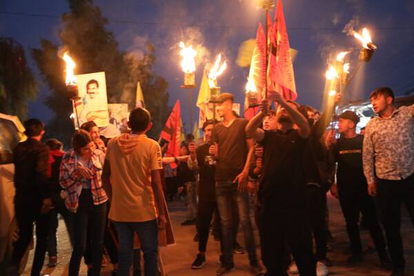 Shengal (Sinjar)- The Turkish state continues to attack Shengal by using drones. Despite the attacks, the Iraqi government has not closed its airspace to Turkey. On October 29, the Turkish drones targeted a house in Xanasor. Yesterday, the members of the Shengal Young Women’s Union and mothers held a torch march in Xanasor to condemn the drone attack. The march started in front of the building of the Xanasor Peoples’ Assembly and ended in front of the house, which was targeted in the drone attack. During the march, the members of the Shengal Young Women’s Union and Yazidi Asayish members carried posters of Kurdish leader Abdullah Öcalan.