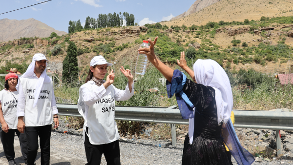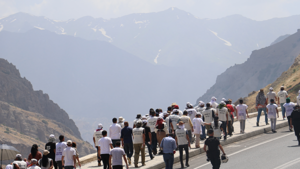 *The marchers headed over to the Gürpınar district of Van. Despite a police and gendarmerie blockade, they marched to the district center with great enthusiasm. They stayed in the district at night. After having breakfast in the district at around 6 a.m., they restarted their march despite hot weather.