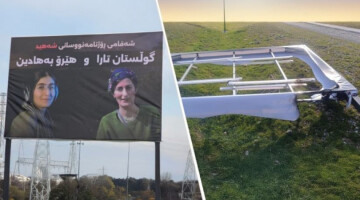 Attack on photos of Kurdish journalists killed in Turkish drone strikeThe signboard showing the photographs of Gulistan Tara and Hêro Bahadîn, two Kurdish journalists killed in a Turkish drone strike in the Saidsadiq district of Sulaymaniyah on December 23, 2024, was attacked and broken down.