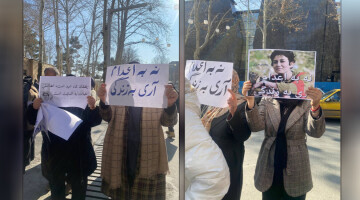 Women protest death sentence against Pakhshan Azizi in front of governor's office in Sanandaj