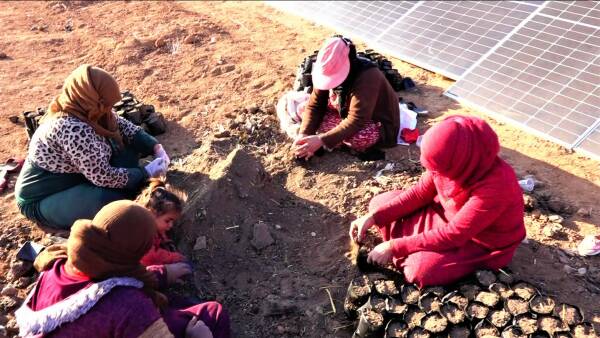 Zirgan (Abu Rasin)- Life goes on in the town of Zirgan (Abu Rasin), located in the Jazira Canton of North and East Syria, despite the ongoing Turkish attacks. In the town, people plant seeds after collecting the remnants of war to breathe life into nature. “The Turkish attacks cannot prevent us from breathing life into nature,” they told NuJINHA.