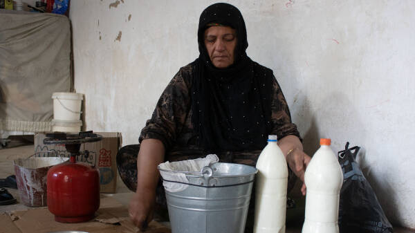 Qamishlo- Heyat Cuma is from the Til Merûf village of Hasakah’s Tirbespiyê town but now she has lived in Qamishlo, northeastern Syria, with her family after being displaced from their village. Being engaged in animal husbandry for 45 years, she tries to make a living for her family by selling milk and cheese. She is proud of herself for raising her children.