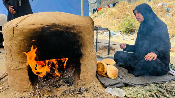 Amira Hassouna and the other women baking bread also help families taking shelter in the camp by distributing free bread. Taboon oven, also known as Tabun oven, is a traditional clay oven used in Afghanistan for centuries.
