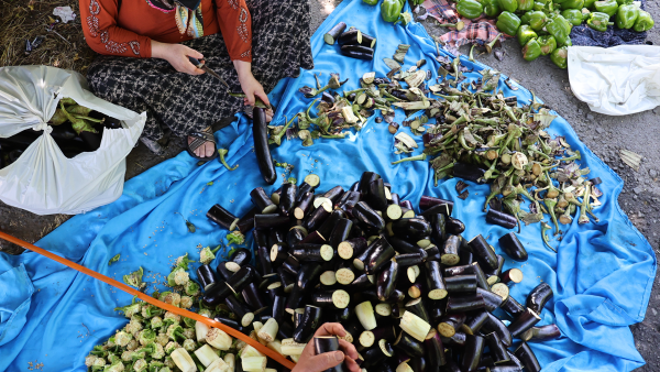 زنانی که هر سال در اواخر ماه آگوست، پیش از آغاز فصل سرما، اقدام به تهیه مواد خشک کردنی مینمایند، با خرید گوجه فرنگی، بادمجان و فلفل، تدارکات زمستانی خود را شروع میکنند. این زنان که به میادین میوه و ترهبار مراجعه نموده و محصولات مورد نیاز خود را خریداری میکنند، به خشک کردن فلفلها میپردازند و گوجه فرنگی و بادمجانها را نیز از طریق کباب کردن برای مصرف زمستانی آماده میسازند. زنانی که هر سال در این فصل فعالیت خود را آغاز میکنند، باغچهها، بالکنها و پشت بامهای منازل خود را با مواد خشک کردنی انباشته میسازند. برخی از آنان جهت تأمین نیازهای خانواده خویش وقت صرف این کار میکنند، در حالی که گروهی دیگر از زنان با تهیه و فروش مواد خشک کردنی، که آن را به عنوان یک فرصت شغلی تلقی مینمایند، کسب درآمد میکنند.