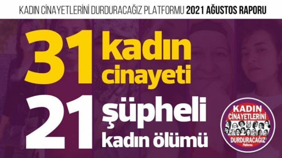 مرکز خبر – پلاتفرم ما قتل زنان را متوقف می‌کنیم (KCDP) گزارش خود را در مورد میزان قتل زنان در ماه آگوست منتشر کرد. بر اساس این گزارش ۳۱ زن در ماه اوت کشته شدند و ۲۱ زن نیز گفته می‌شود که جان خود را از دست داده‌اند.