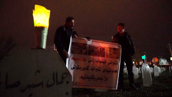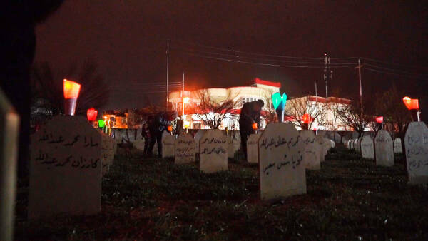 مرکز خبر- به گزارش خبرگزاری زن، در جریان فعالیت‌های بزرگداشت سی و چهارمین سالگرد حمله‌ی شیمیایی هلبجه، علی‌رغم سرما و باران، شب گذشته تعدادی از جوانان میهن‌پرست کوردستان و سازمان زنان جوان و فعال با حضور بر مزار شهدای هلبجه و روشن‌کردن شمع یاد قربانیان بمباران شیمیایی را گرامی داشتند.