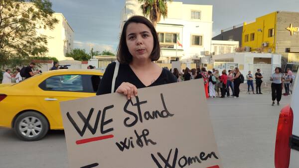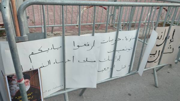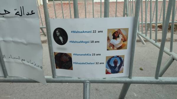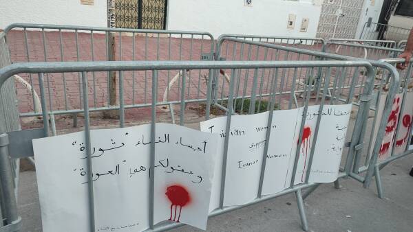 تونس- روز جمعە ٣٠ سپتامبر ٢٠٢٢، فعالان زن و مدافعان حقوق بشر تونس با مشارکت انجمنهای فمینیستی در مقابل فرهنگسرای ایرانیان، در تجمعی اعتراضی در خصوص قتل حکومتی ژینا امینی دختر کورد اهل سقز و قیام زنان ایران علیە سرکوب و نقض حقوق اولیە، همبستگی خود را با آنان اعلام کردند.