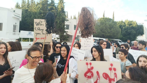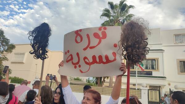 نادیلا الزغامی رئیس انجمن زنان دمکرات در تونس کە در این تجمع موهای خود را کوتاە کرد بە خبرگزاری زن گفت: «شرکت من در تظاهرات بیانگر همبستگی با حقوق زنان در ایران است، ما بە شدت قیومیت زنان را رد میکنیم و برای حفظ موقعیت و منزلت زنان در جامعە مبارزە میکنیم.»