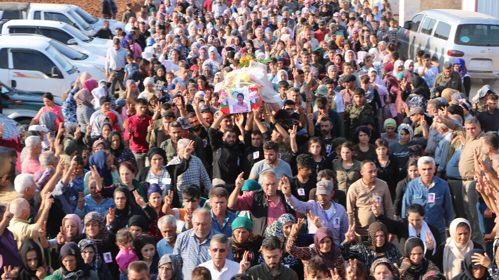 هزاران نفر از شهروندان کانتون عفرین و شهباء در مراسم به خاکسپاری دیان علو، دانشآموزی که در اثر حملهی دولت اشغالگر ترکیه به مدرسهی دخترانه جان خود را از دست داده بود، شرکت کردند.