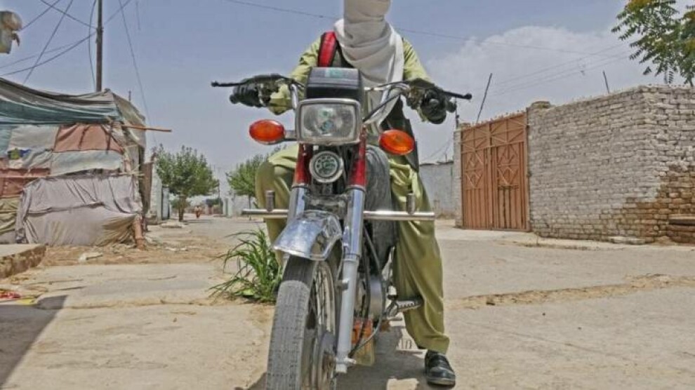 دختری در پاکستان برای تردد با لباس مبدل موتورسواری میکند