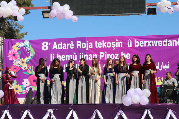 نوروز سلیمان با بیان اینکه هلال زرین از همه زنان هنرمند حمایت کرد، ادامه داد: این حسرت در دل هر فرد کورد و هر زن کوردی مانده بود که حضور خود را در جایی ابراز کند. زنان هنرمندی که صدایشان زیبا و رسا بود، نمی‌توانستند روی صحنه حاضر شوند و مطابق فرهنگ خود بخوانند. اما انقلاب این فرصت را به ما داد تا جنبش زنان هلال زرین را تأسیس کنیم و همەی زنان کورد توانستند صدا و احساسات خود را بیان کنند. هلال زرین توانست این زنان را در آغوش خود بگیرد و صدای آنها را به گوش همه دنیا برساند. قدم‌های مثبت و بزرگ زیادی برداشته شد و هنرمندان زیادی خلق شدند. با انقلاب روژاوای کوردستان، زنان توانستند با سازهایی که در دست داشتند و با صدا و تصویر خود در جشن ٨ مارس روی صحنە رفتە و به آن غنا ببخشند. هر هنرمندی این شانس را داشت تا خود را از هر نظر توسعه دهد. امروزه زنان خواننده می‌توانند صدای خود را در سراسر جهان به گوش مردم برسانند. یک گروه سنتی زنانه در شهبا تأسیس شده است. گروه‌های سنتی به نام شهید مزگین از زنان مسن تشکیل شده‌اند و بر روی صحنه، صدای خود را به همەی زنان می‌رسانند.