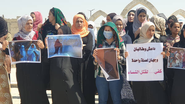 زنان شهر رقه در شمال و شرق سوریه در یک موضع همبستگی از زنان افغانستان حمایت کردند.