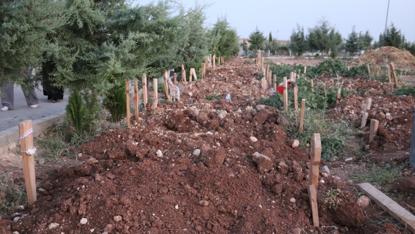 بر اساس آمارهای رسمی، ١٢ هزار نفر در این زلزله جان خود را از دست دادند. هویت ۲۵ نفری که در گورستان بینام و نشان دفن شده بودند هنوز مشخص نشده است. در همین زمینە جسد زنی به نام عایشهگل کارلیه به تازگی و پس از مشخص شدن نمونه DNA از قبرستان خارج شد. همچنین در یک ماه گذشته ٢ جسد به خانوادهها بازگرداندە شد. خانوادههای زیادی هستند که اجسادشان در شهر گم شده است. اعضای خانوادهای که برای اجساد مفقود شده از جمله زنان و کودکان نمونه DNA تهیه میکنند، ۵ ماه است که هیچ نتیجهای دریافت نکردهاند.