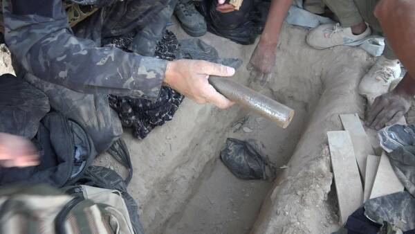 بە گفتەی خانوادههایی کە این سلاحها در چادرهایشان پیدا شده است، اعضای داعش حین کندن زمین و پنهان کردن سلاح و مهمات چشمان آنها را بستەاند تا ندانند کجا پنهان شده است.