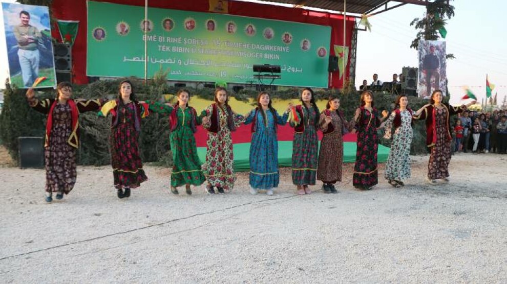 هزاران آواره از عفرین و مردم شهباء در شمال و شرق سوریه، به مناسبت سالروز انقلاب ۱۹ ژوئیه، دیروز جمعه ۱۶ ژوئیه جشنی برگزار کردند، تاکید کردند که روحیهی انقلاب و مقاومت تا پایان اشغال و ایجاد سوریهای دموکراتیک در اوج خود ادامه دارد.