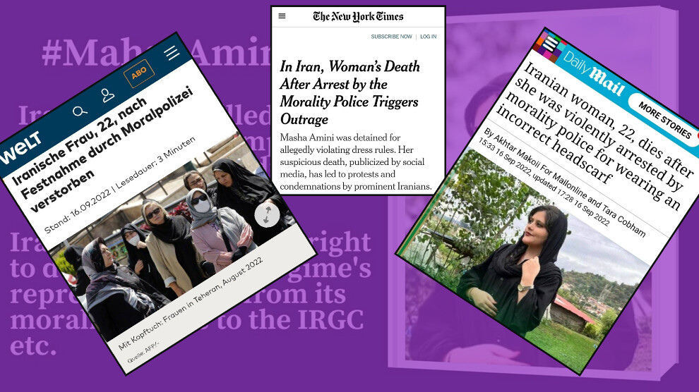 در پی خبر مرگ ژینا امینی، جوان ٢٢ سالهی سقزی و انتشار تصاویر او در فضای مجازی، رسانههای خارجی نیز این خبر را در تیتر اول خبرهای خود قرار دادند.