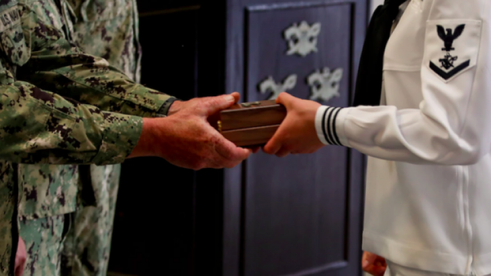 این ملوان یکی از ۱۷ ملوانی است که روز پنجشنبه فارغالتحصیل شدند و درجهی خود را دریافت کردند.