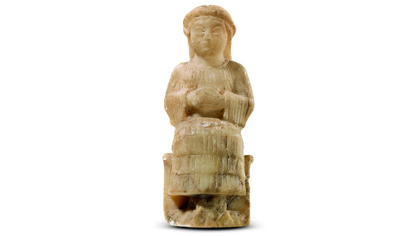 مجسمهی دیگری زنی را با لوحی به خط میخی بر روی پاهایش نشان میدهد. بابکاک میگوید یک محقق مرد در گذشته نوشته بود: «حتی معلوم نیست چرا این زن یک لوح روی دامنش داشته است.»
